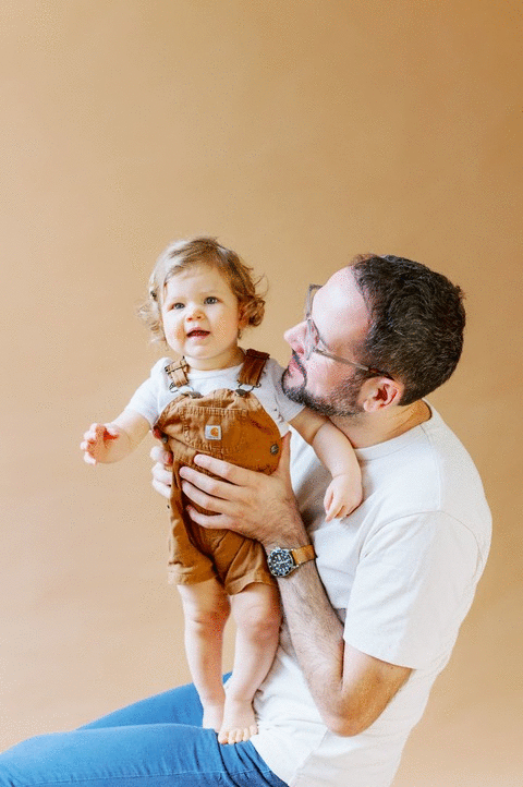 Une séance photo au studio avec la famille Pomme, réalisée à l’occasion du premier anniversaire de la petite. Fonds photo cachemire et bleu ciel. Les jeux et assises visibles sur les photos sont disponibles au studio.